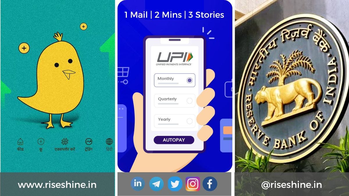 Koo to launch in US🐤; UPI Autopay for Play Store💸; RBI chooses five banks for digital currency🏦