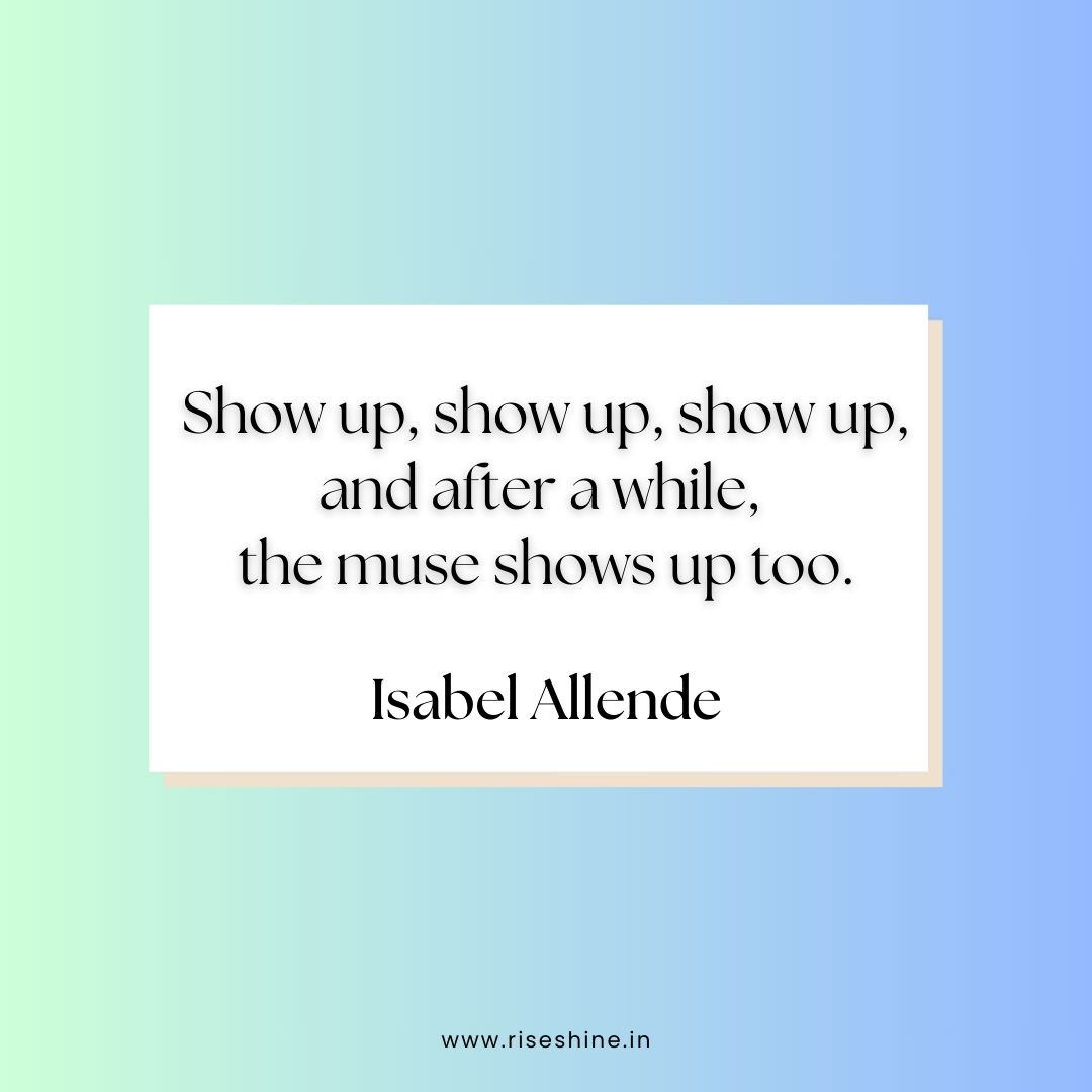 Allende’s inspiring words remind us that consistency and effort lead to creativity and breakthroughs. We create the conditions for success and inspiration by showing up every day.