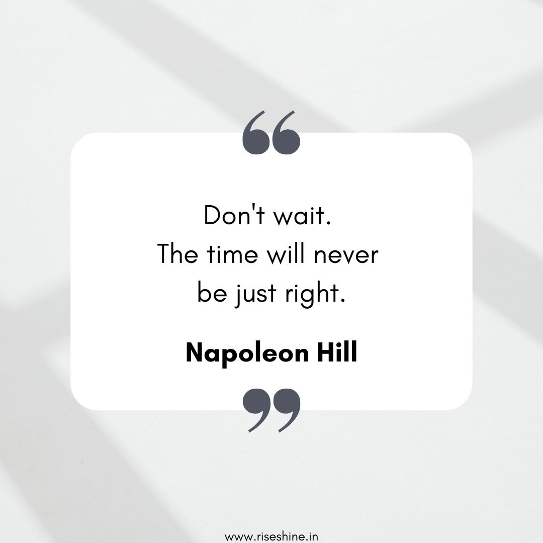 Today, Napoleon Hill’s timeless wisdom reminds us that waiting for the "perfect time" often leads to missed opportunities. Action, not timing, is what moves us forward.